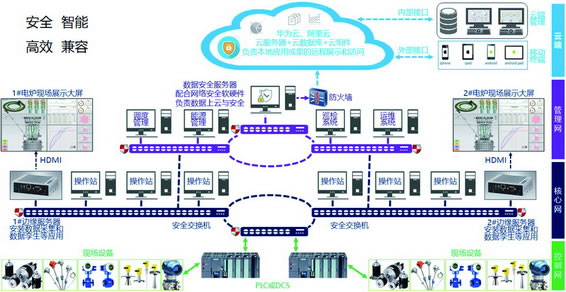 優(yōu)勢:包含控制網(wǎng)、核心網(wǎng)、管理網(wǎng)以及云端四級工廠網(wǎng)絡(luò),兼容開放性好,設(shè)置軟硬件結(jié)合的縱深防御措施,安全性好,根據(jù)實(shí)時(shí)參數(shù),按照模型進(jìn)行仿真,推薦合理的運(yùn)行參數(shù),結(jié)合礦熱爐工藝參數(shù)、運(yùn)行參數(shù),計(jì)算出電極工作端實(shí)際位置