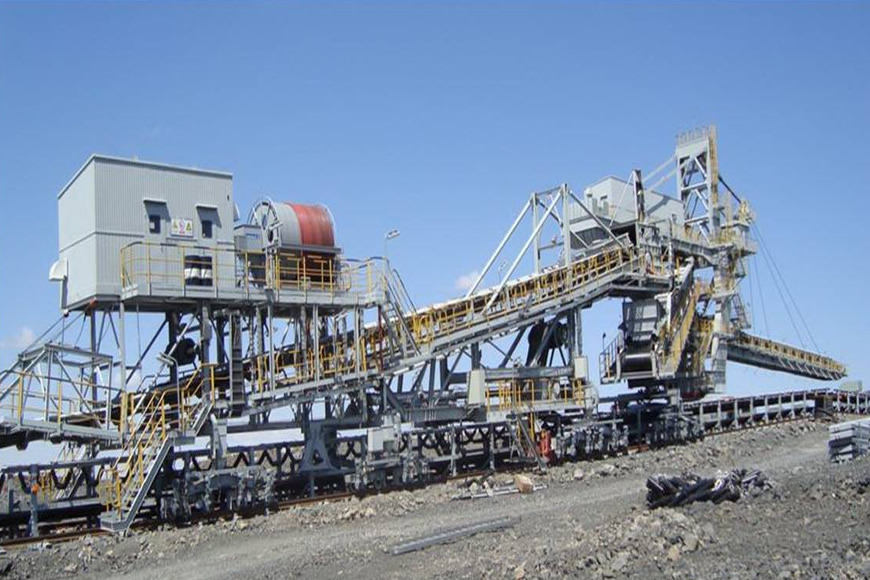 排土機(jī)作為露天礦連續(xù)開(kāi)采或半連續(xù)開(kāi)采工藝中的關(guān)鍵設(shè)備,處于設(shè)備系統(tǒng)的最后一環(huán)。在露天礦開(kāi)采和土石方作業(yè)中,排土機(jī)作為移動(dòng)式連續(xù)作業(yè)的排料設(shè)備,將帶式輸送機(jī)系統(tǒng)運(yùn)送過(guò)來(lái)的表土或剝離物排放于排土場(chǎng)。大連重工已自行研制出型號(hào)為895~5000m3/h(1000~10000t/h)、受料臂長(zhǎng)18~50m,排料臂長(zhǎng)30~60m,并可配置軌道式卸料車和履帶式卸料車,適合客戶不同需求的排土設(shè)備。