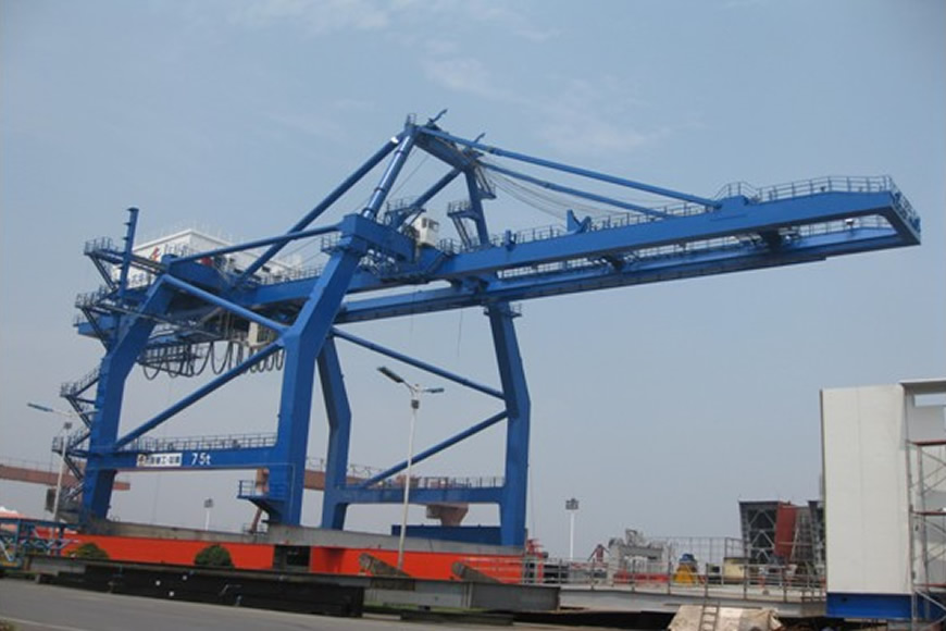 軌道式集裝箱門式起重機(jī)方面,大連重工研制的該類產(chǎn)品具有裝卸速度快、自動(dòng)化程度高的特點(diǎn),適合于鐵路及碼頭后方堆場(chǎng)。目前產(chǎn)品主要機(jī)型為吊具下30.5噸—61噸。